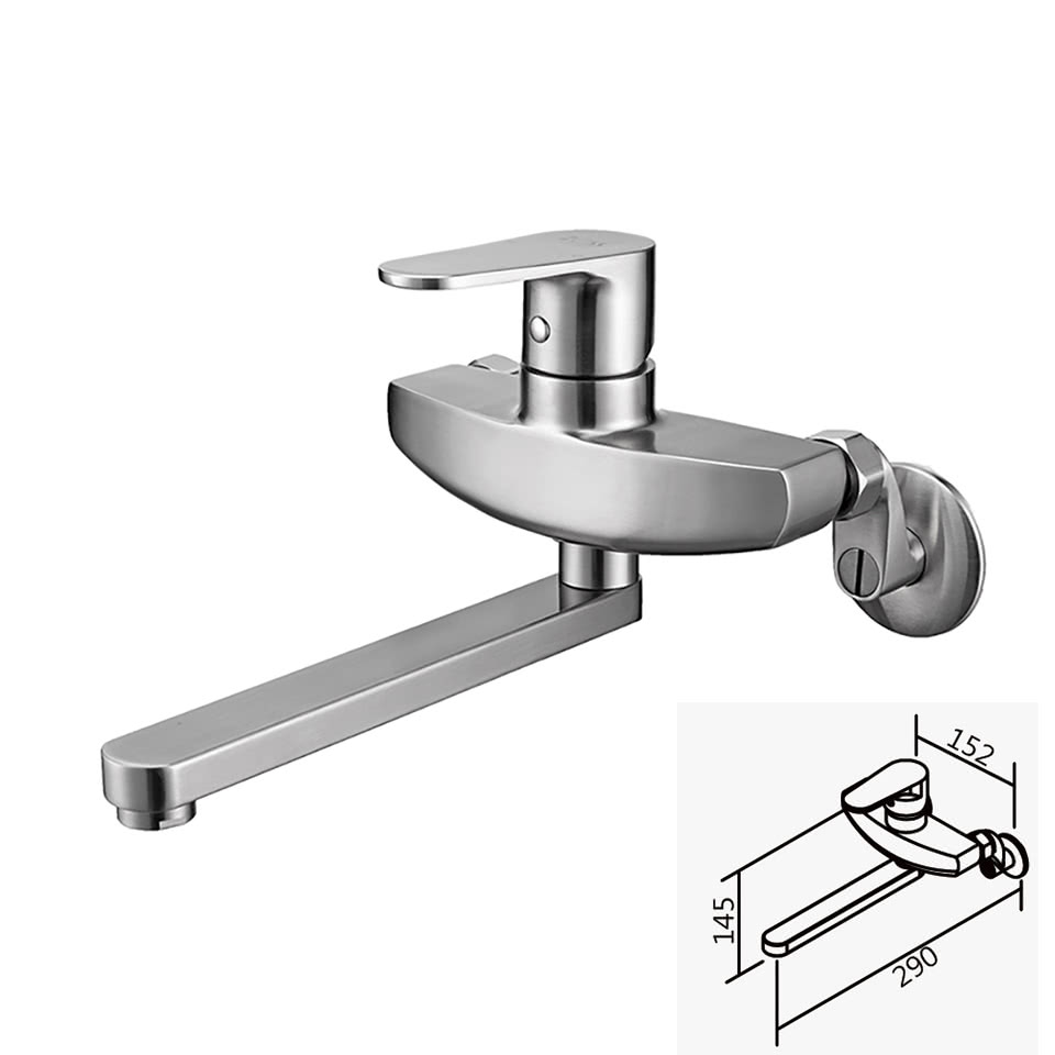 【新沐衛浴】304不鏽鋼壁掛式廚房水龍頭 無鉛無毒不銹鋼水龍頭
