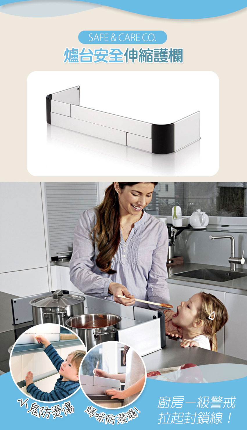 【丹麥Safe & Care】幼兒安全系列(爐台伸縮護欄) ➽官網推薦介紹※孩子防燙傷,媽媽防潑濺
