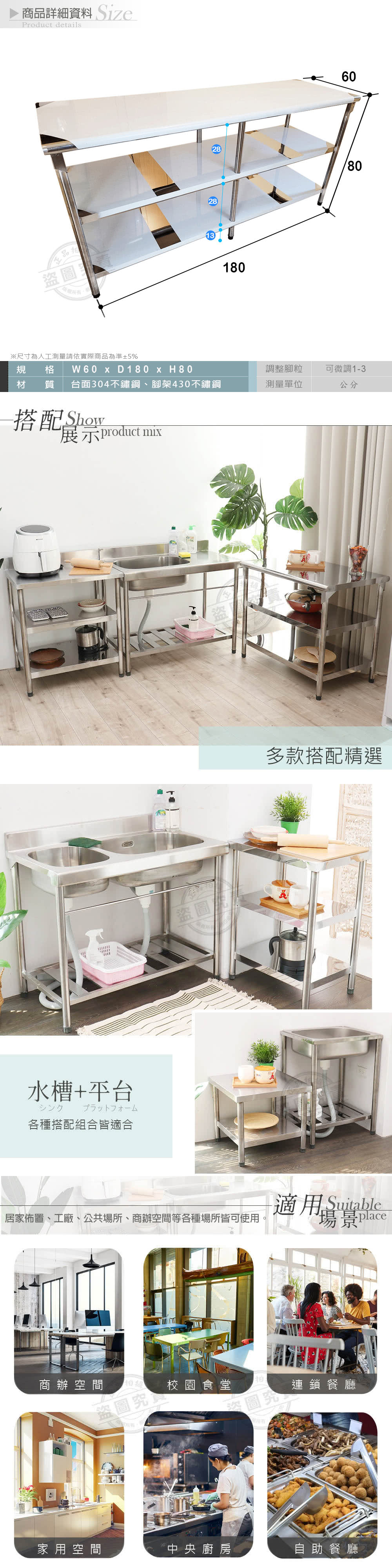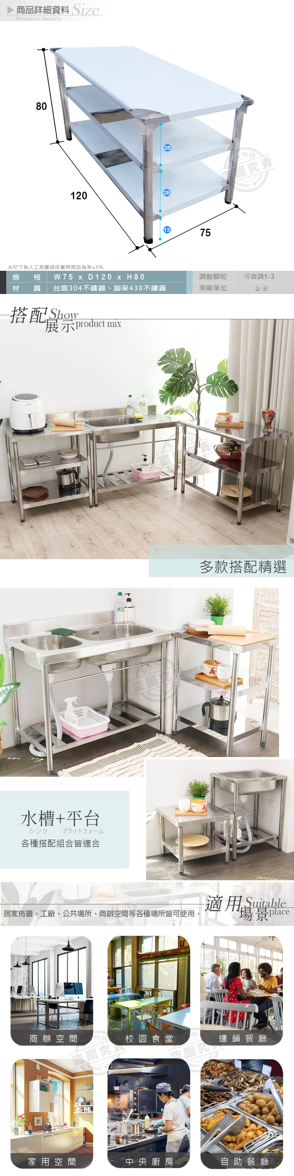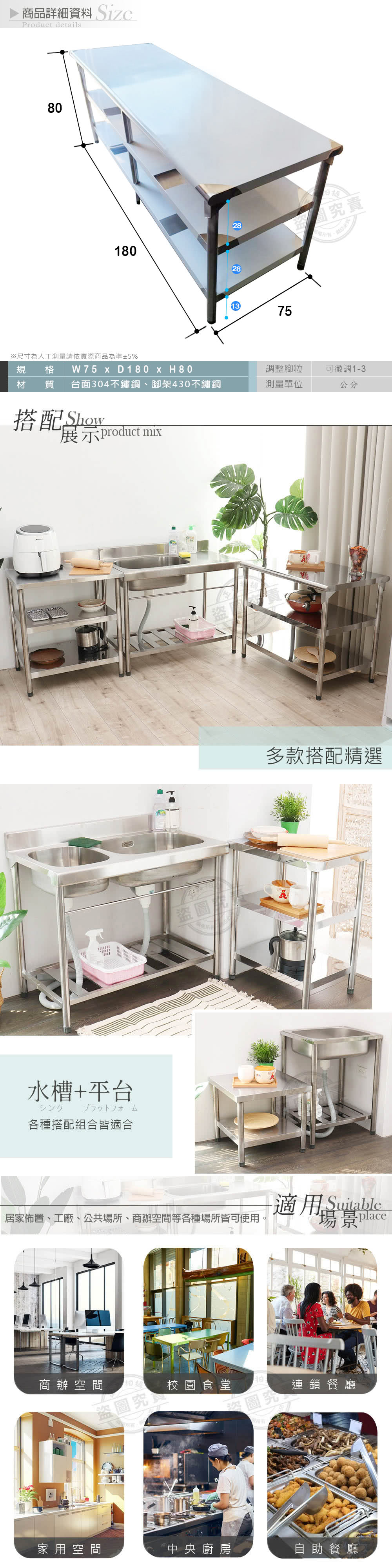 【Abis】豪華升級版75x180CM三層圓角304不鏽鋼桌/料理桌/工作桌/工作台/流理台(2.5尺X6尺)簡介說明