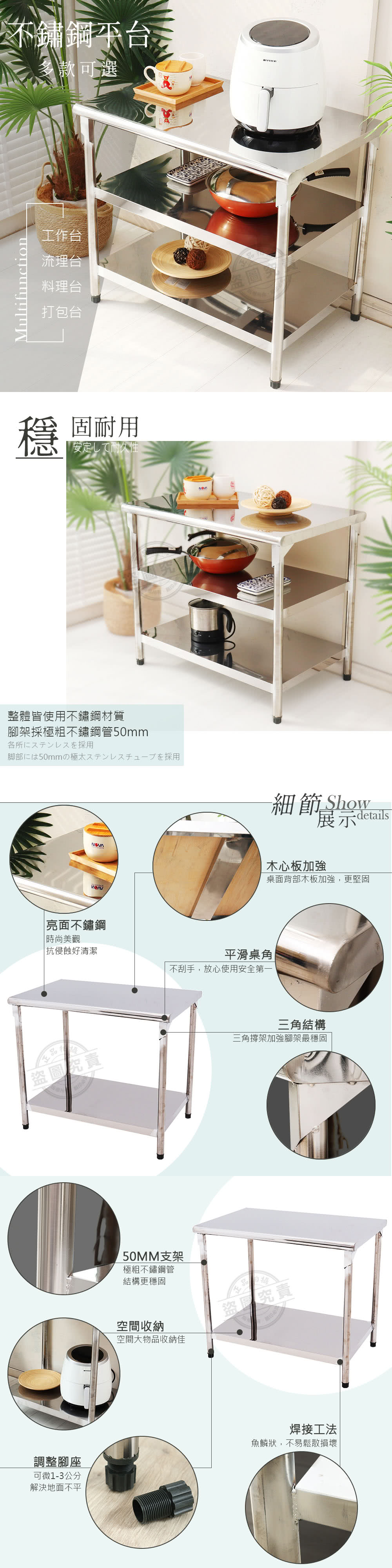 【Abis】豪華升級版90x120CM三層圓角304不鏽鋼桌/料理桌/工作桌/工作台/流理台(3尺X4尺)