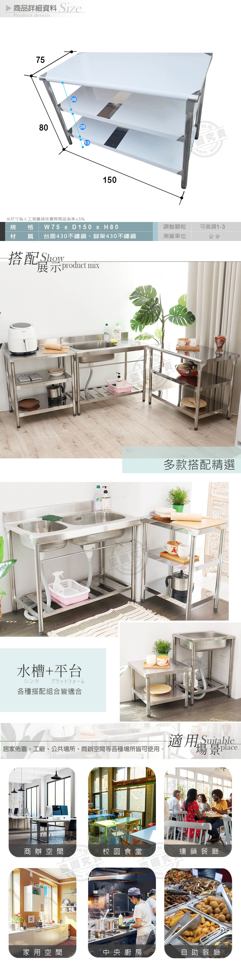 momo購物 報價 14299 元,桌腳與桌邊使用角撐架加強固定,平滑桌角不刮手,放心使用,不鏽鋼材質抗腐蝕、耐刮磨易清潔... 規格說明