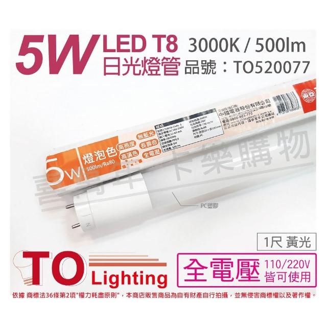 【東亞】2支 LTU010-5AAL LED T8 5W 3000K 黃光 1尺 全電壓 塑膠日光燈管 _ TO520077