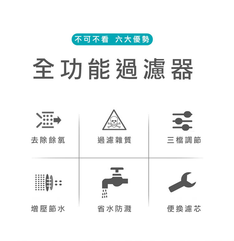 家中水管老舊,時常排出異物及髒水,長時間不用時還會排出黃褐色鏽水,萬向三段增壓水龍頭過濾器,使用高效能加厚PP濾芯,有效過濾異物及髒水,還能阻擋含量過高餘氯(消毒水),可透視ABS外殼, 隨時了解水質狀態,即時更換濾芯,360度轉向使用超便利,一鍵三檔切換,省水省時,還附贈超值配件組,讓你快捷安裝無煩腦,家中水質就靠它把關! 品牌名稱 Reddot 紅點生活 款式龍頭式