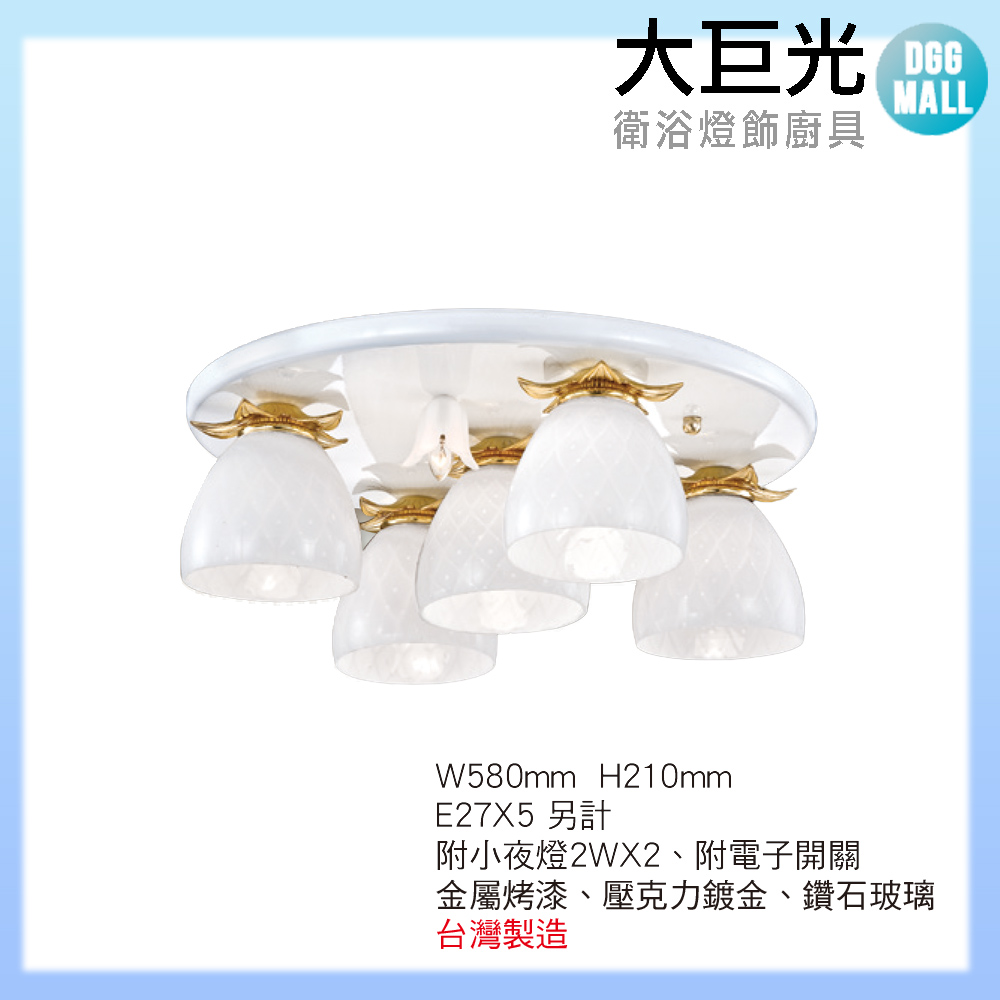 品牌:大巨光 【大巨光】現代風E27 5燈 半吸頂燈-中(LW-10-2993)