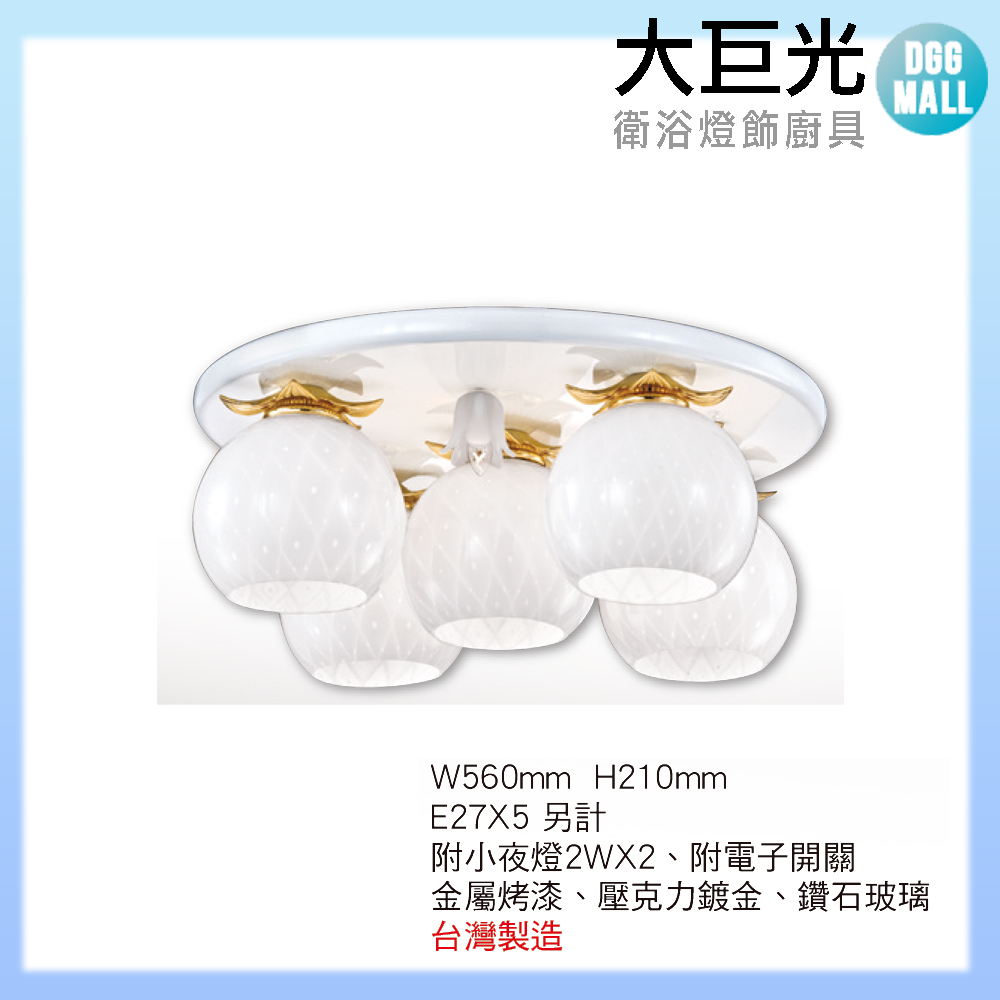 品牌:大巨光 【大巨光】現代風E27 5燈 半吸頂燈-中(LW-10-2991)