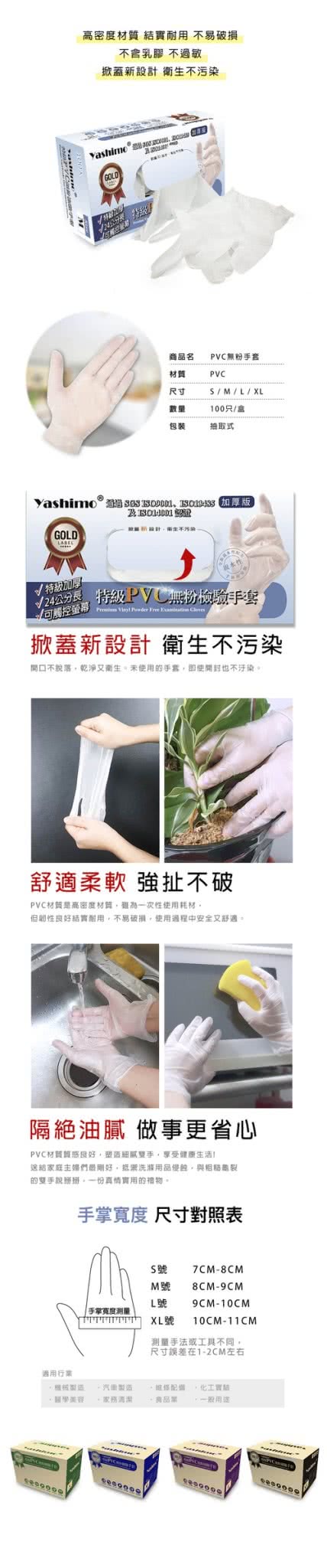 【Yashimo】特級PVC無粉檢驗手套(加厚手套/無粉/PVC手套/可觸控螢幕/每盒100支入)簡介說明