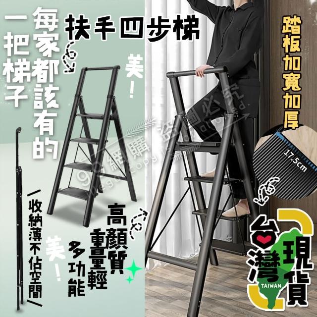 【99網購】肯泰帶扶手家用四步梯(伸縮梯/扶手梯/多功能折疊梯/二/三/四步梯/人字梯/摺疊梯/折疊鋁梯)