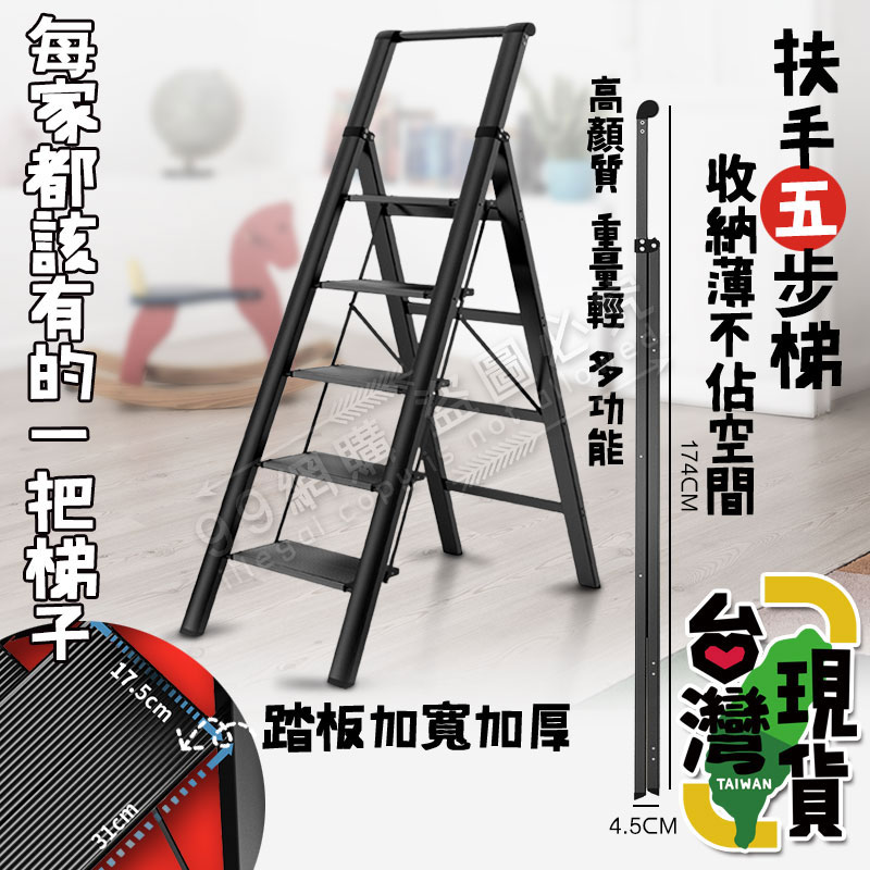 【黑色五步梯】踏板梯 梯子 折疊梯 A字梯 工作梯 摺疊梯 人字梯(加寬防滑踏板/加粗D型管/安全卡扣設計)