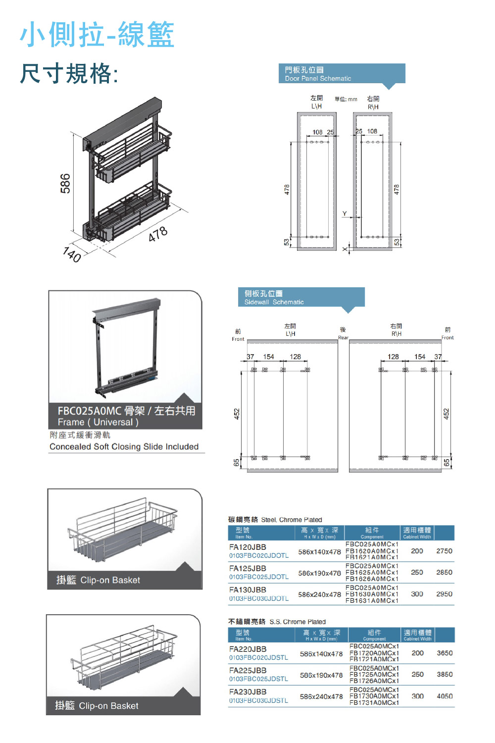 【Jyun Pin Selected】駿品嚴選小側拉線籃(FA230JBB)簡介說明