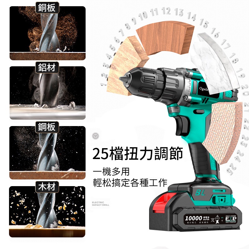 》》【Ogula 小倉】無刷電鑽 重載衝擊電鑽(藍色10000毫安大容量)送豪華批頭配件(衝擊鑽/電動起子/起子機),看Ogula 小倉官網即時價格 🟨Ogula 小倉新品快報 ( ͡° ͜ʖ ͡°) 我從勸敗文和開箱評價大概明白到這是 無刷衝擊鑽 送豪華批頭配件 25+3擋扭力!無刷電機!,無極變速!正反調節!,6D智能夾頭!雙軸承系統!。