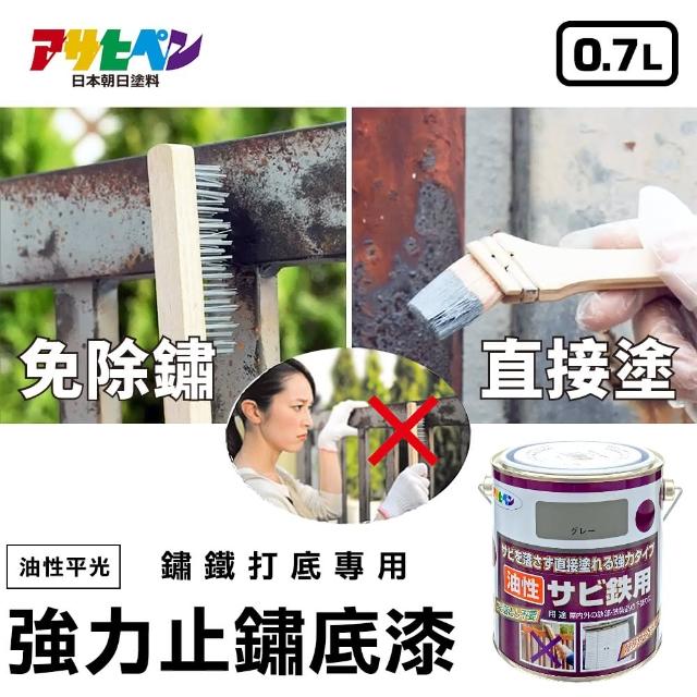 【日本Asahipen】鏽鐵打底強力止鏽底漆鼠灰0.7L(防銹 止銹 抗風吹日曬雨淋 免除銹 直接塗用)