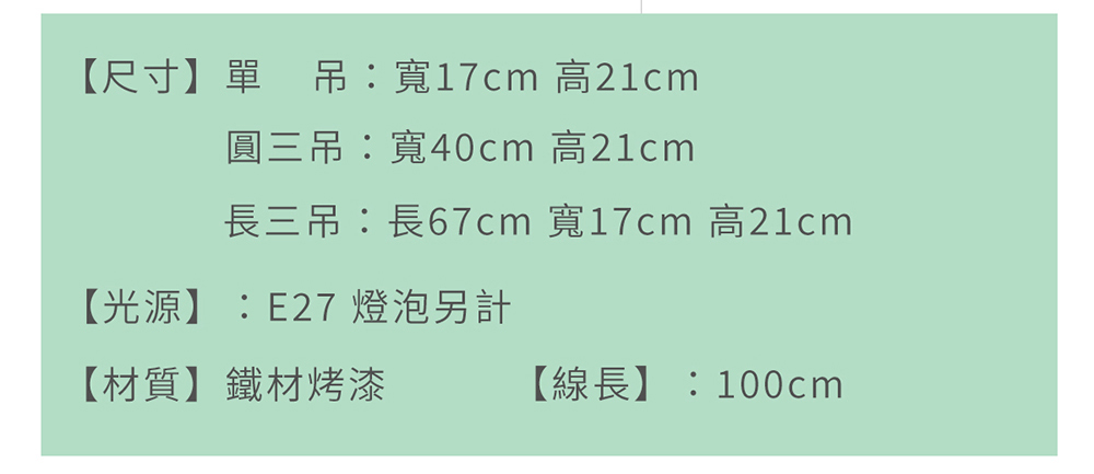 momo購物網站 網路價 2200 元,寬40公分、高14公分,原木、金屬烤漆,E27 X 3、LED燈泡另計... 規格說明