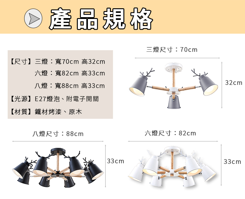 MOMO購物 價格 2120 元,寬62公分、高15公分,原木、金屬烤漆,E27 X 3、LED燈泡另計... 規格說明
