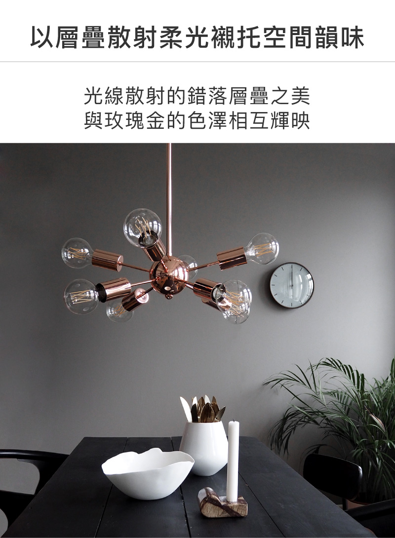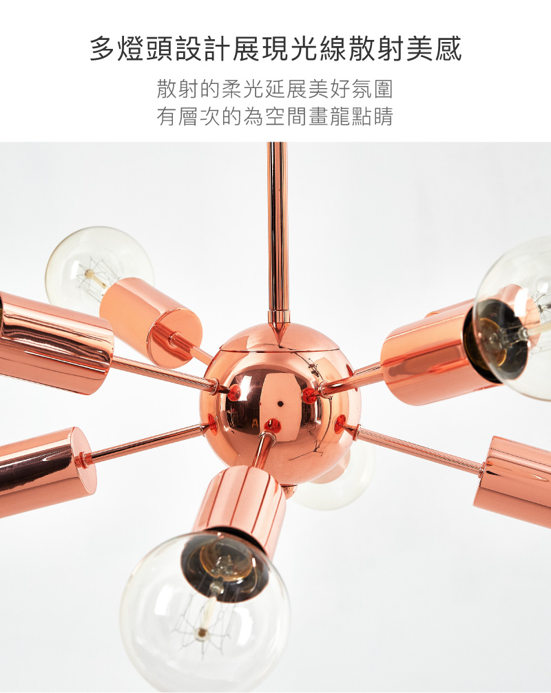 momo購物網 網路價 6990 元,玫瑰金質感色澤,錯落層疊發散造型,多燈頭輕奢設計... 規格說明
