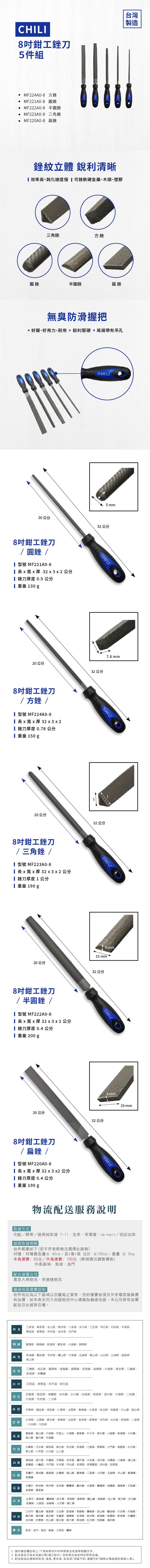 【CHILI】8吋鉗工銼刀-半圓銼 MF222A0-8(金屬用挫刀 金工剉刀 扁銼 方銼 半圓銼 圓銼 三角銼)