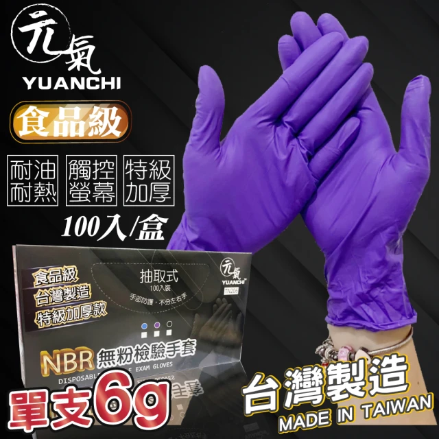【YUANCHI(元氣)】台灣製造NBR無粉檢驗手套(食品級檢驗/可觸螢幕/100支入/一盒)