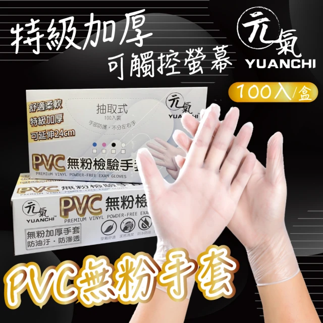 【YUANCHI】PVC無粉檢驗手套(加厚手套/透明手套/無粉/PVC手套/不含易過敏原/可觸螢幕/100支入/一盒)