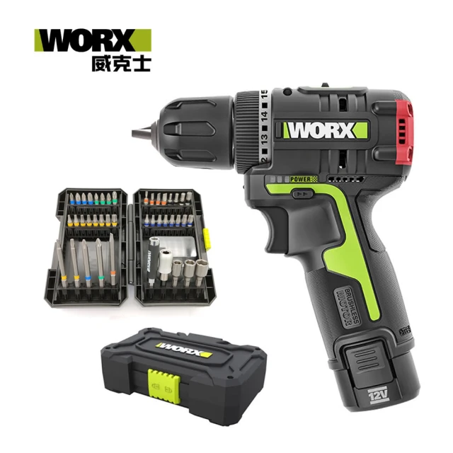 【WORX 威克士】12V鋰電無刷震動電鑽雙電池+彩虹螺絲起子頭42件套組(WU131+WA1149)
