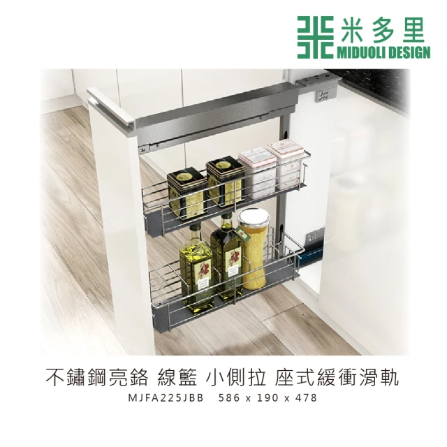 【MIDUOLI 米多里】不鏽鋼亮鉻 線籃小側拉 座式緩衝滑軌(MJFA225JBB)