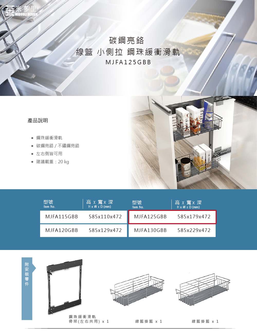 【MIDUOLI 米多里】碳鋼亮鉻 線籃小側拉 鋼珠緩衝滑軌(MJFA125GBB)簡介說明