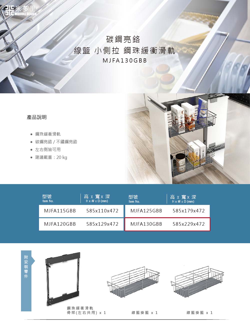 用PCHome搜尋找到了ptt評論outlet專櫃介紹 MIDUOLI 米多里 碳鋼亮鉻 線籃小側拉 鋼珠緩衝滑軌(MJFA130GBB)規格