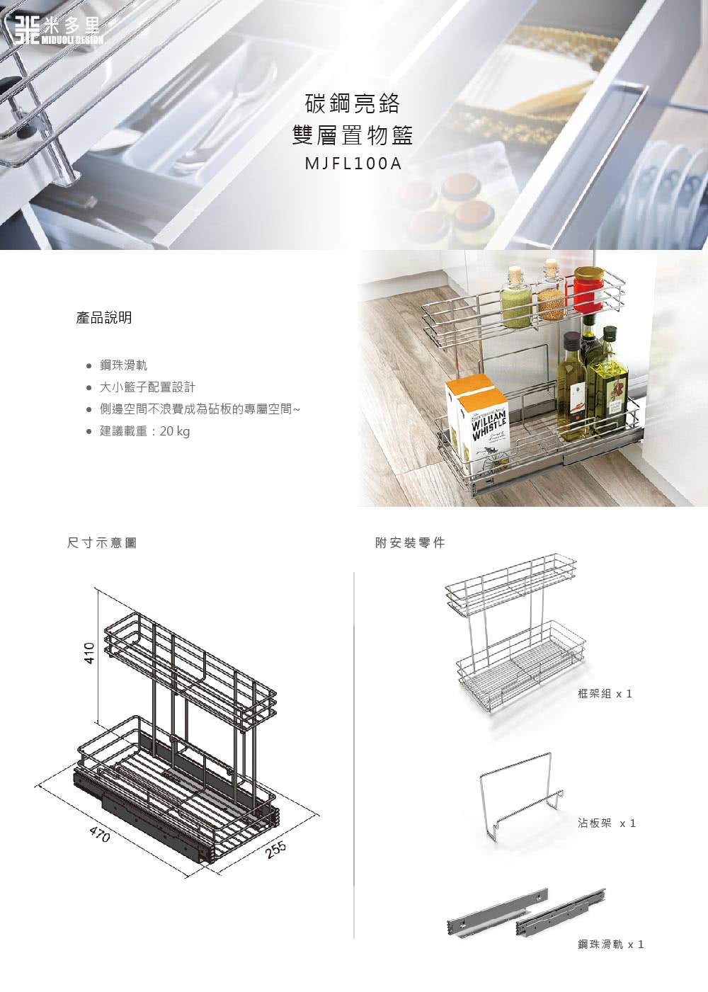 【MIDUOLI 米多里】不鏽鋼亮鉻 雙層置物籃(MJFL200A)簡介說明