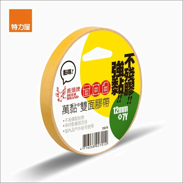 【特力屋】鹿頭牌萬黏布雙面膠帶12mm