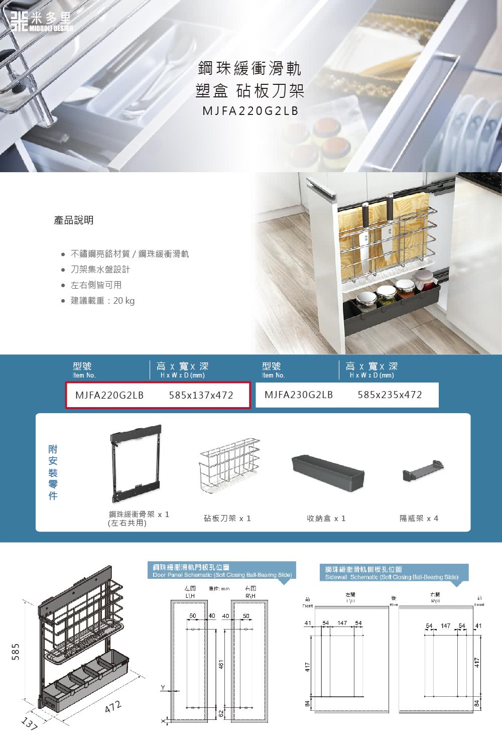 【MIDUOLI 米多里】塑盒 砧板刀架 鋼珠緩衝滑軌(MJFA220G2LB)簡介說明