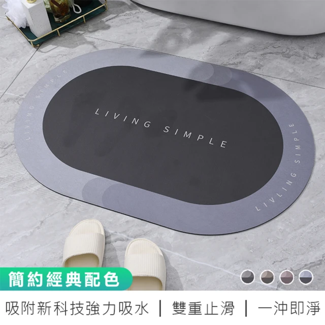【麥瑞】新科技超吸水防滑地墊(防滑地墊 橢圓地墊 浴室防滑墊 矽藻土腳踏墊 硅藻泥瞬吸墊 硅藻吸水地墊)
