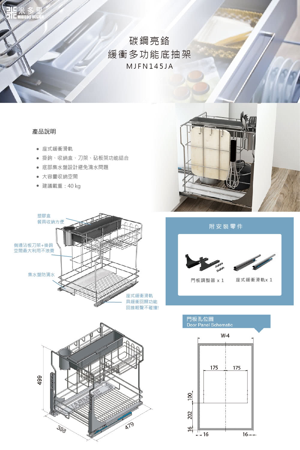 【MIDUOLI 米多里】碳鋼亮鉻 緩衝多功能底抽架(MJFN145JA)簡介說明