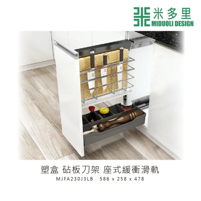 【MIDUOLI 米多里】塑盒 砧板刀架 座式緩衝滑軌(MJFA230J3LB)