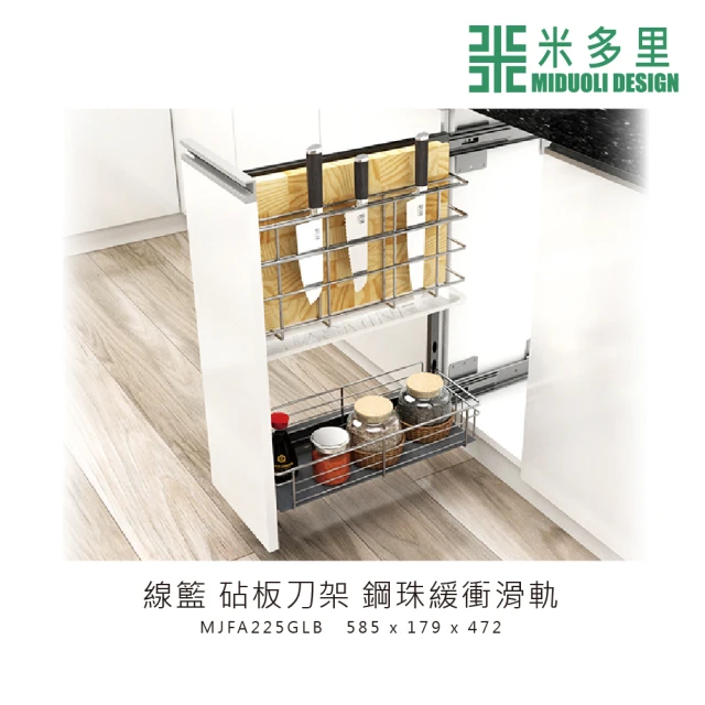 【MIDUOLI 米多里】線籃 砧板刀架 鋼珠緩衝滑軌(MJFA225GLB)