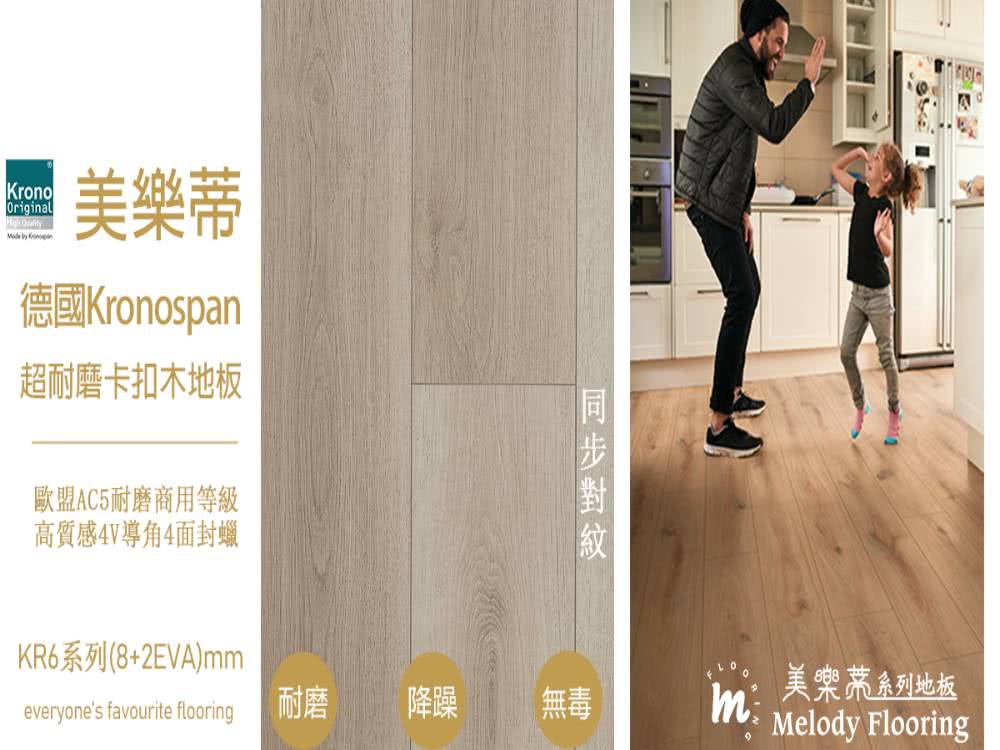 【美樂蒂】德國KRONOSPAN卡扣式超耐磨地板--KR6系列KR601--同步對紋--(每箱約0.8坪/11片)