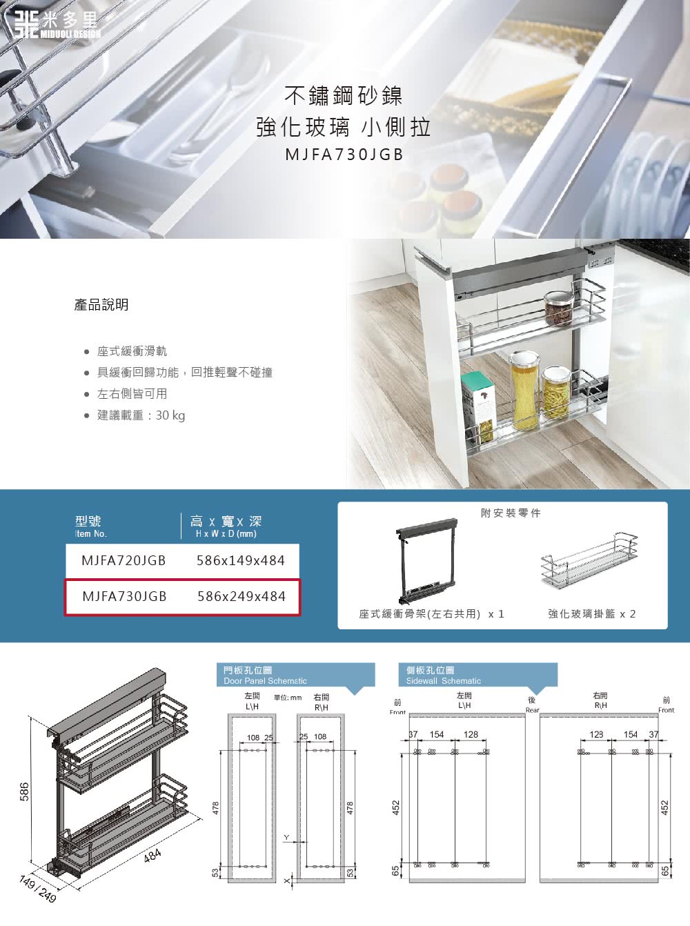 【MIDUOLI 米多里】不鏽鋼砂鎳 強化玻璃 小側拉(MJFA730JGB),看MIDUOLI 米多里官網最新價格 MIDUOLI 米多里新品快報 ( •́ὤ•̀) 我從官網報導和優惠推薦文大概知道到這是 收納調味盒及瓶罐器具好幫手 推薦爐具下方左右兩側使用,座式緩衝滑軌 回推輕聲不碰撞,建議載重30kg。