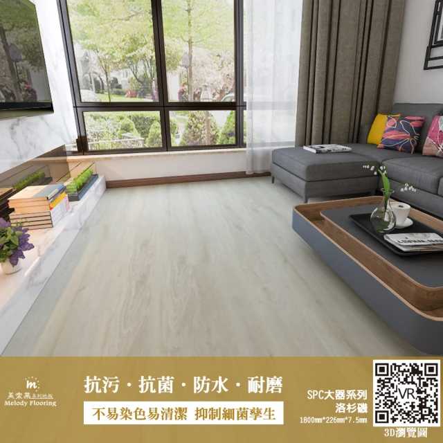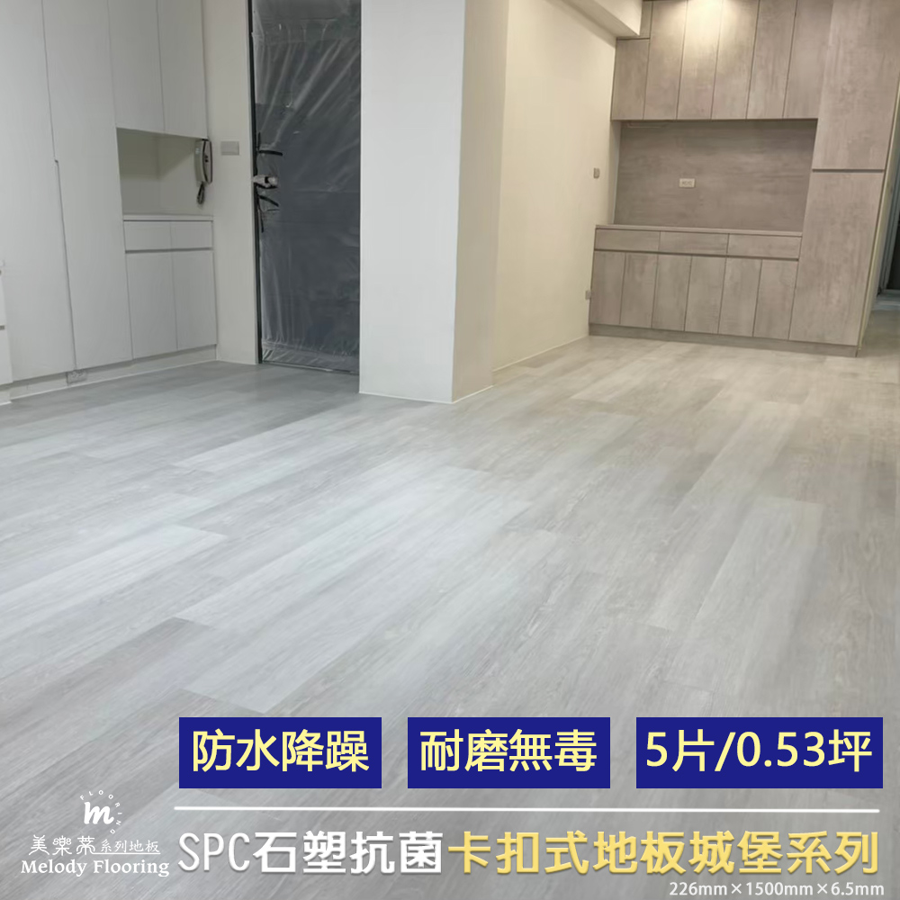 【美樂蒂】SPC石塑卡扣式超耐磨地板--M系列--M02淺灰(防水抗菌)