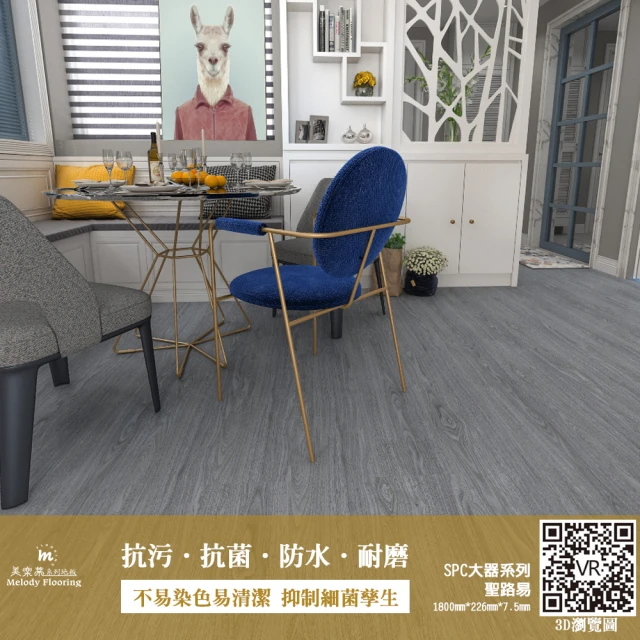 【美樂蒂】SPC石塑卡扣式超耐磨地板--大器系列7.5mm--聖路易(每箱約0.5坪/4片)