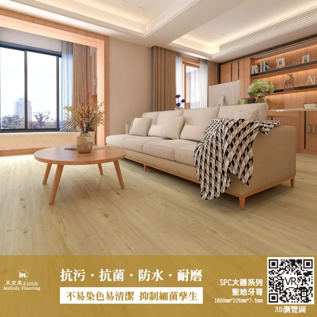 【美樂蒂】SPC石塑卡扣式超耐磨地板--大器系列7.5mm--聖地牙哥(每箱約0.5坪/4片)