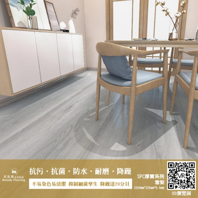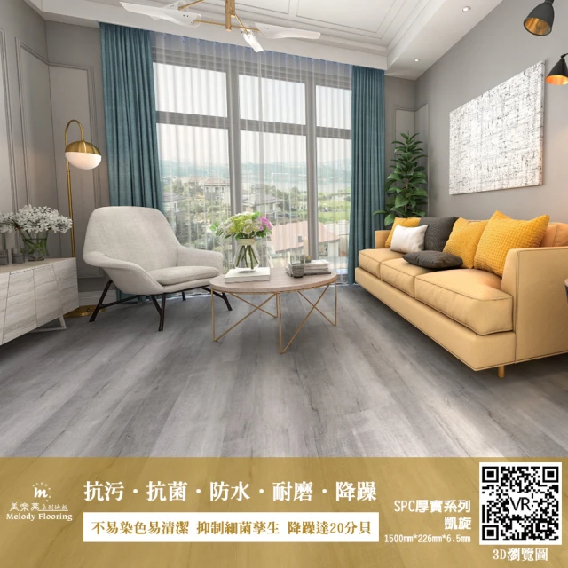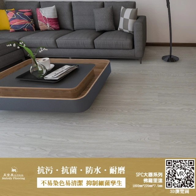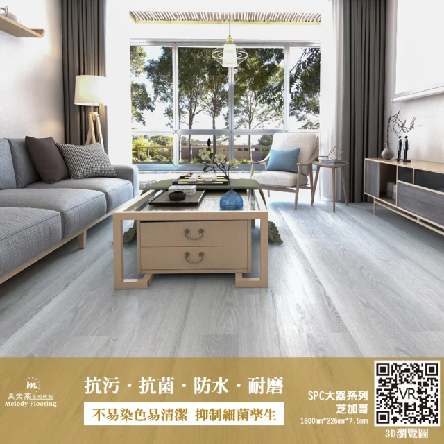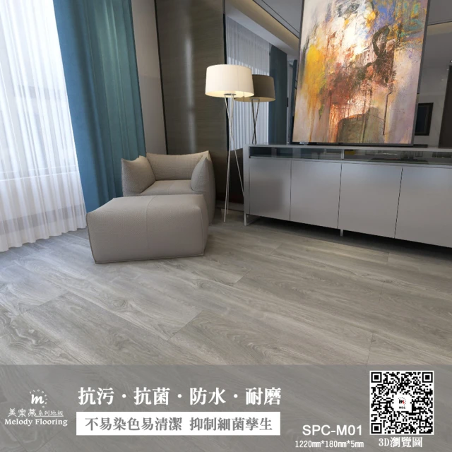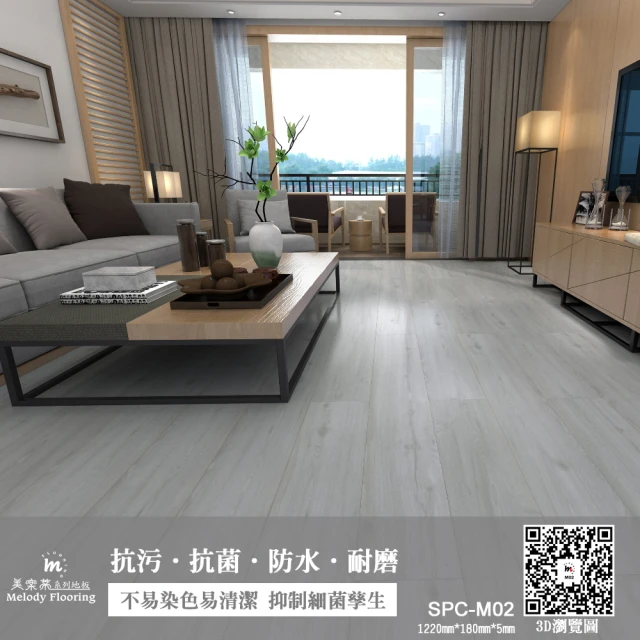 【美樂蒂】SPC石塑卡扣式超耐磨地板--M系列--M02淺灰(防水抗菌)