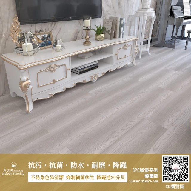 【美樂蒂】SPC石塑卡扣式超耐磨地板--城堡系列6.5mm--薩爾斯(每箱約0.53坪/5片)