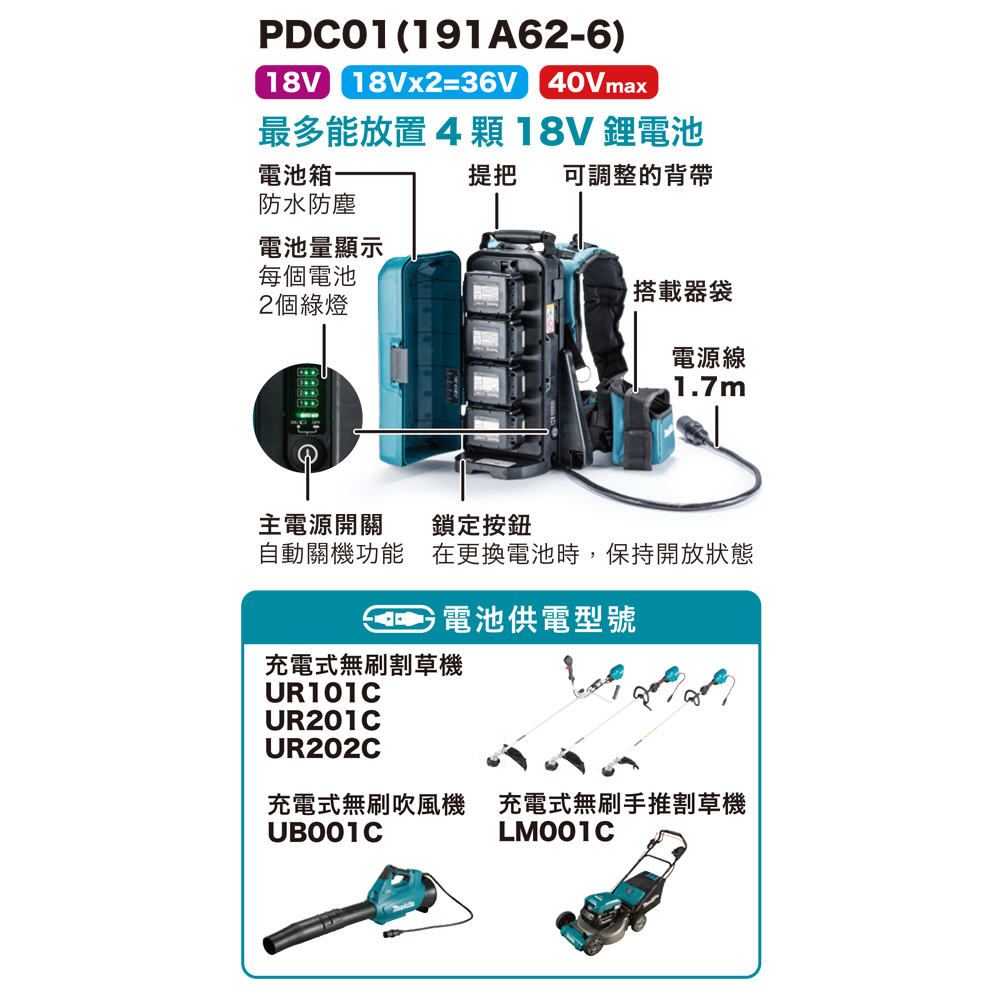 【MAKITA 牧田】背式電池擴充座-191A62-6(PDC01)簡介說明
