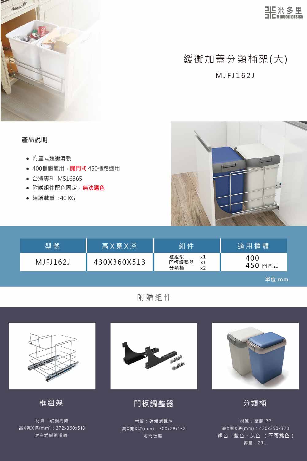 》》【MIDUOLI 米多里】緩衝加蓋分類桶架 - 大(MJFJ162J),看MIDUOLI 米多里官網最新價格 💛MIDUOLI 米多里新貨到店 😁😂 我從官網報導和優惠推薦文大概明白到這是 台灣專利 隱藏式收納設計,新現代整潔美學,座式緩衝滑軌。