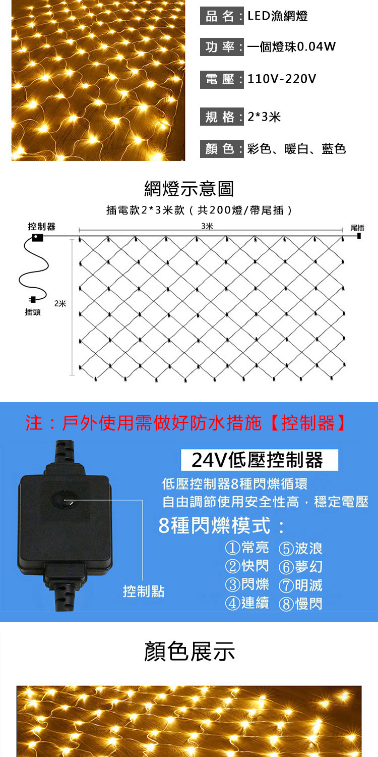 【Ogula 小倉】戶外防水滿天星LED漁網燈串組 2*3米 200燈(裝飾燈 節慶 聖誕節 氛圍燈)簡介說明