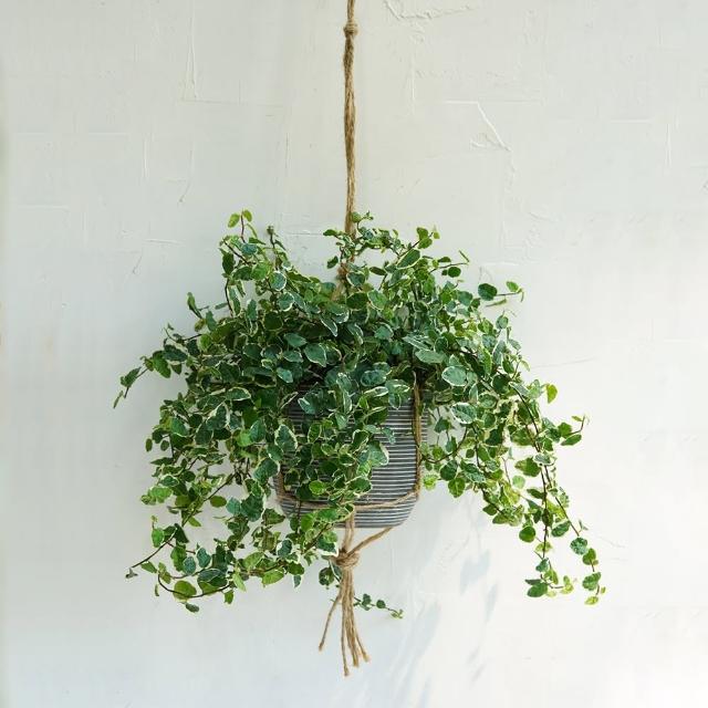 【CNFlower 西恩】雪荔 橫紋花器灰加吊繩(送禮/植栽/植物/觀葉植物)