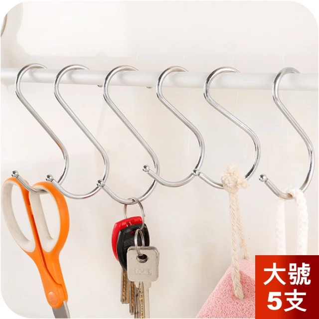 【Dagebeno荷生活】不鏽鋼S型掛勾 金屬免釘無痕S型掛勾(大號5支)