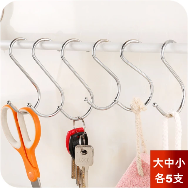 【Dagebeno荷生活】不鏽鋼S型掛勾 金屬免釘無痕S型掛勾(大號中號小號各5支)