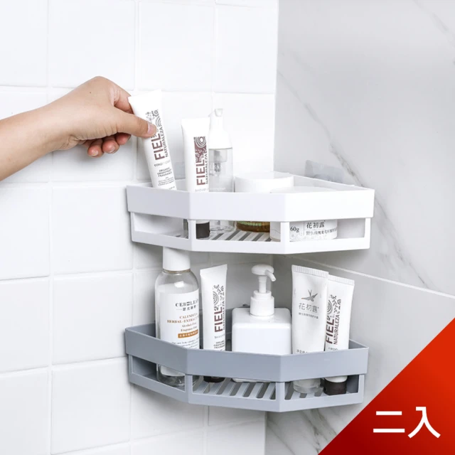【Dagebeno荷生活】免打孔多邊形轉角置物架 浴室無痕三角收納架(二入)