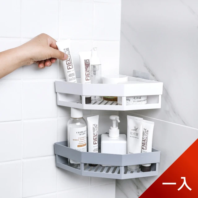 【Dagebeno荷生活】免打孔多邊形轉角置物架 浴室無痕三角收納架