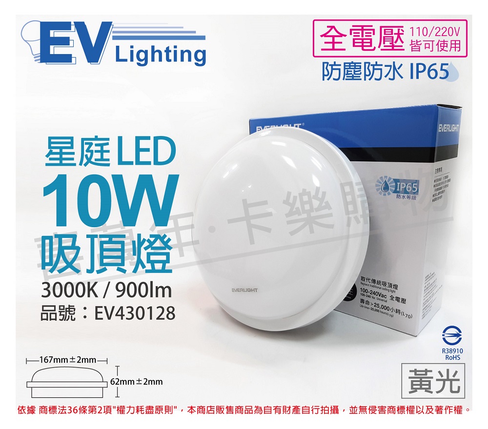 【Everlight 億光】LED 星庭 10W 6500K 白光 全電壓 IP65 戶外 吸頂燈 _ EV430129